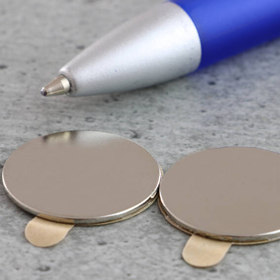 Neodymium Disc Magnets with Self-Adhesive Backing - 22 mm x 1 mm, N35